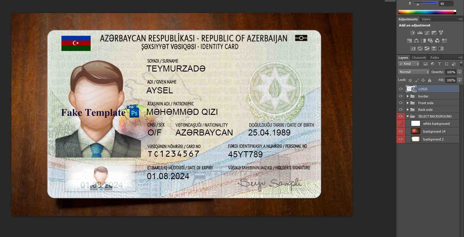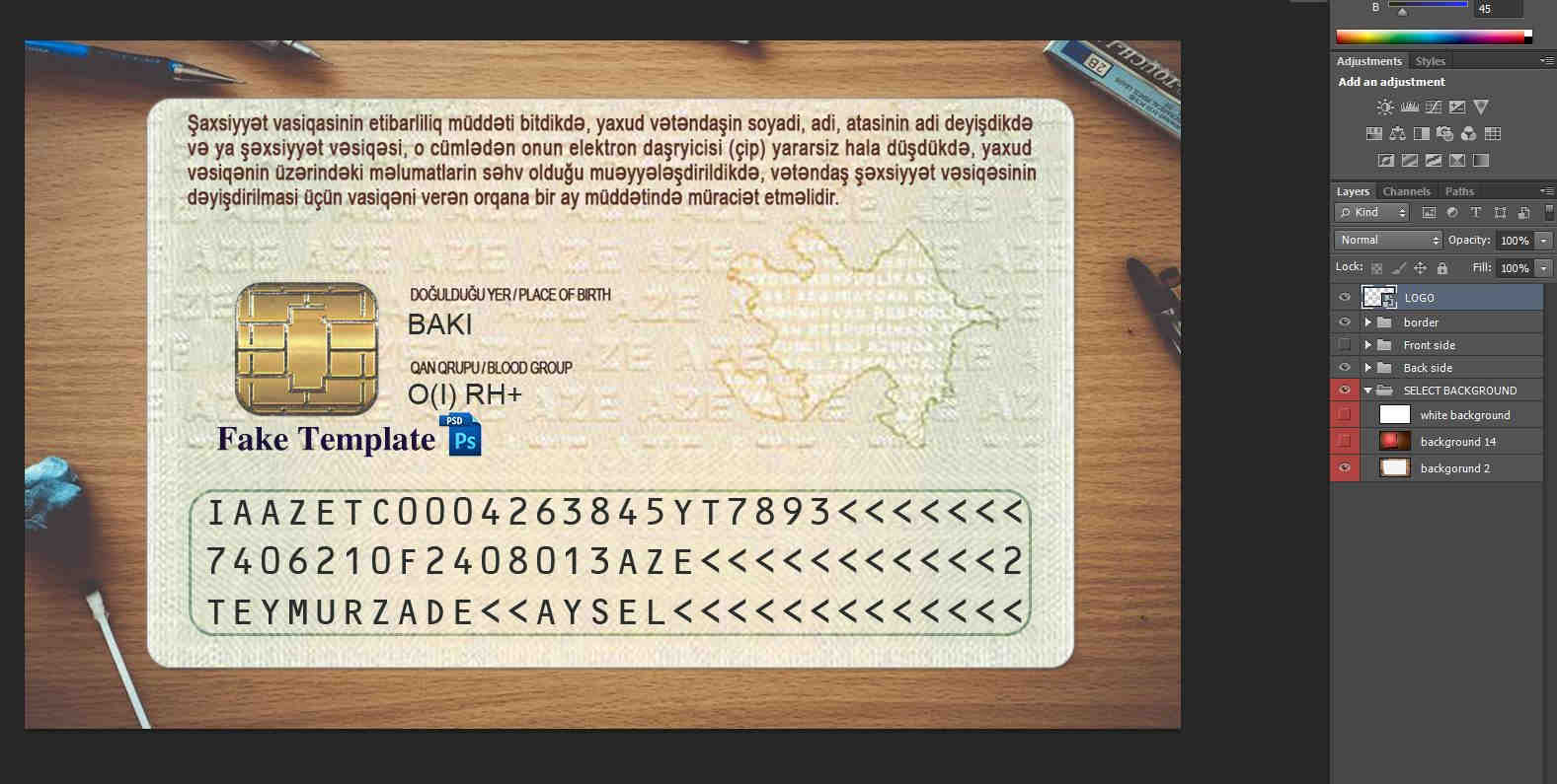 Buying and possessing Azerbaijan ID Card is not illegal. However, This template is for web illustrative purpose only. The use for fraudulent purposes is prohibited. so,use the template with your own responsibility.