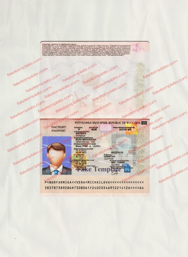 Buying and possessing Bulgaria Fake Passport is not illegal. However, This template is for web illustrative purpose only. The use for fraudulent purposes is prohibited. so,use the template with your own responsibility.