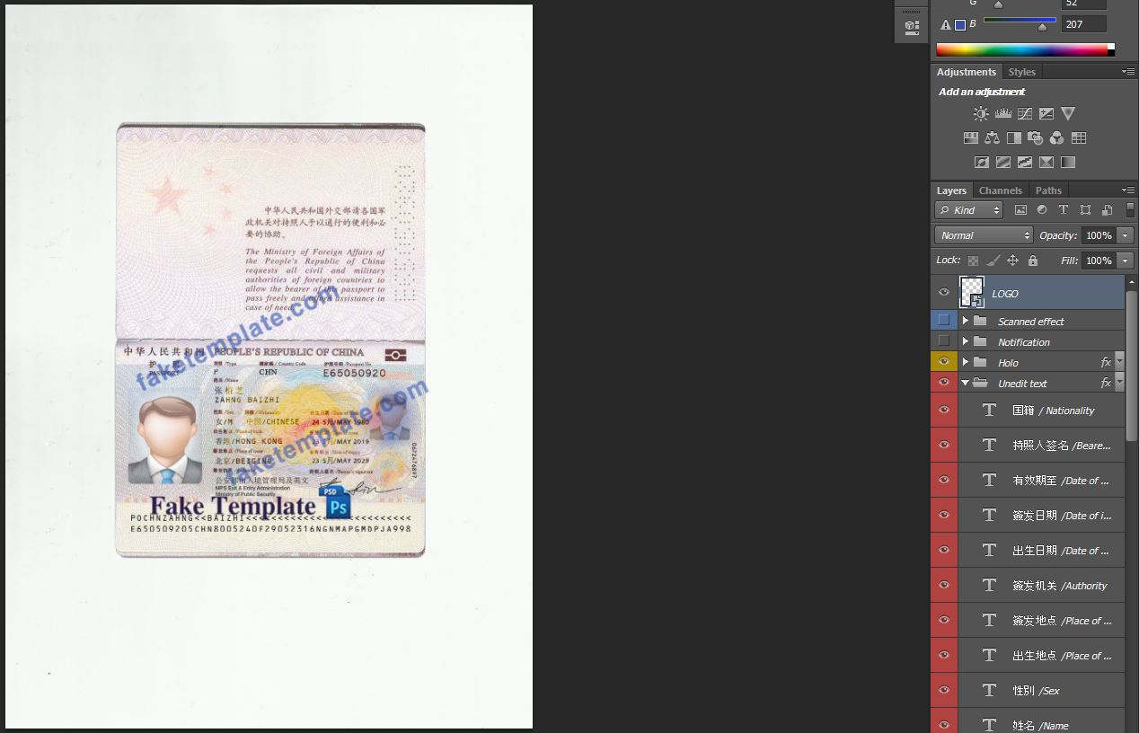 Buying and possessing Fake china passport is not illegal. However, This template is for web illustrative purpose only. The use for fraudulent purposes is prohibited. so,use the template with your own responsibility.
