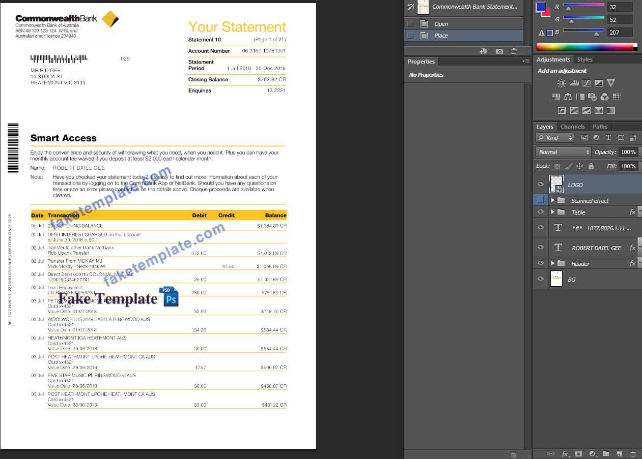 Commonwealth Bank Statement Template Psd