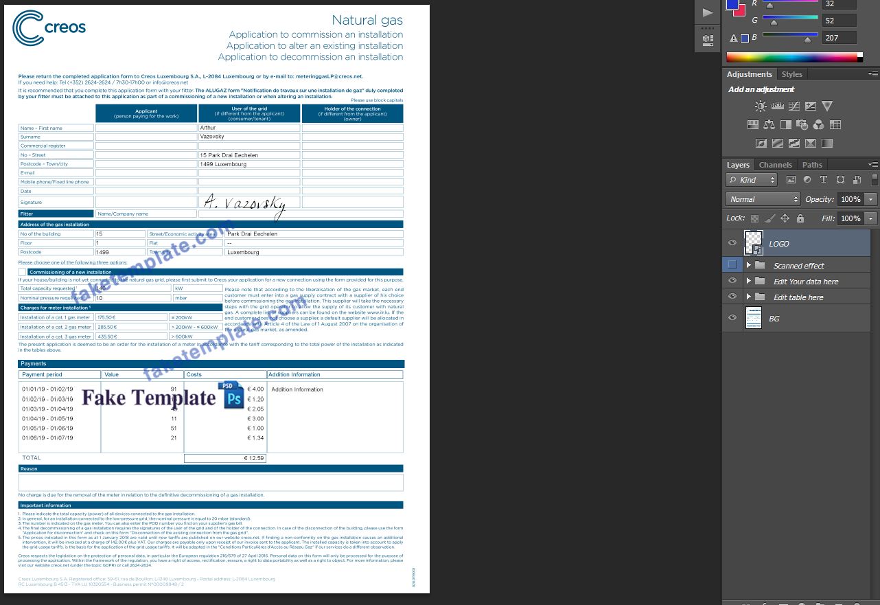Luxembourg Gas Utility Bill Template: Iowa Proof of address psd template