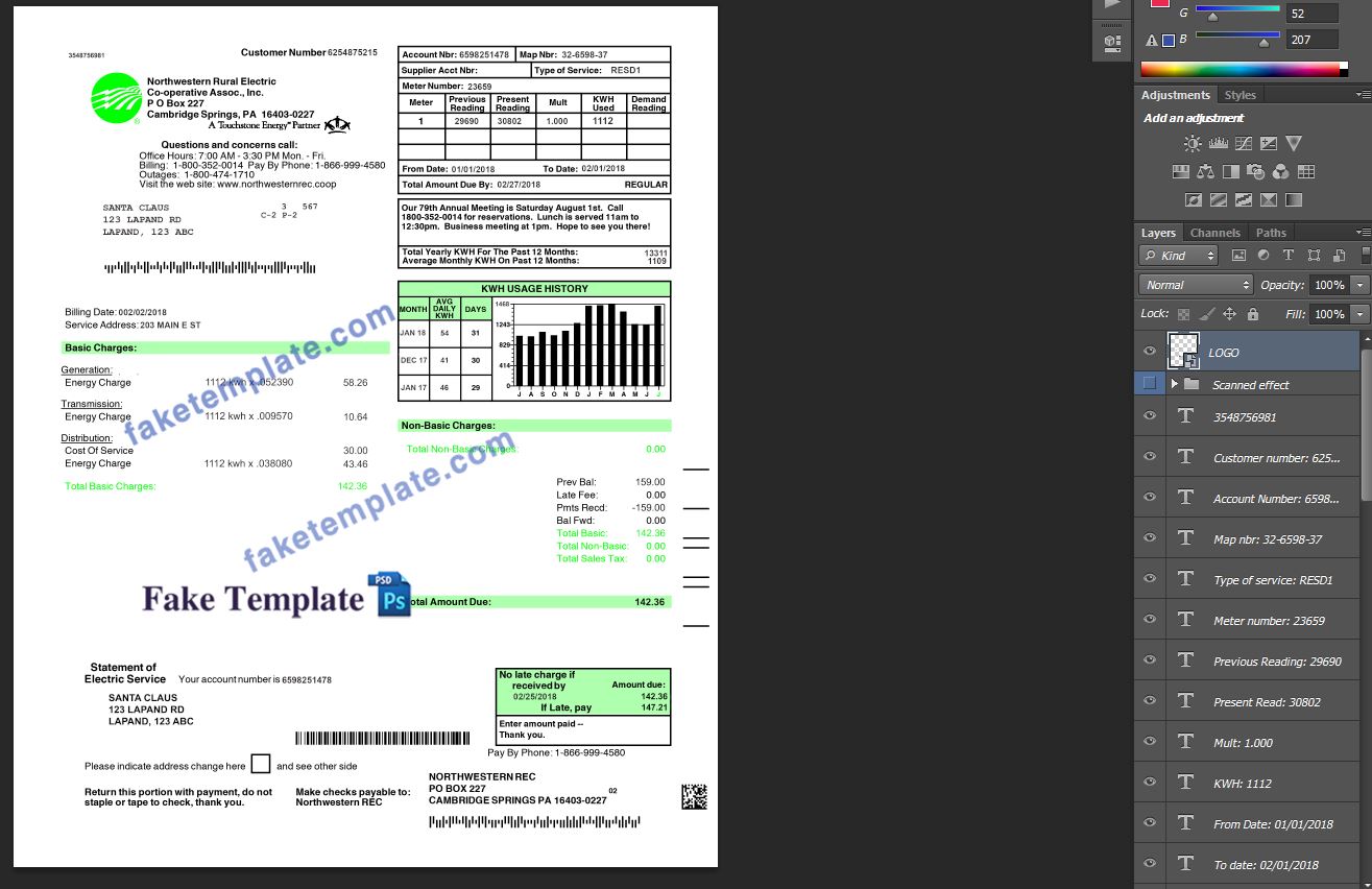Pennsylvania Utility Bill Template: Pennsylvania Proof of address psd template