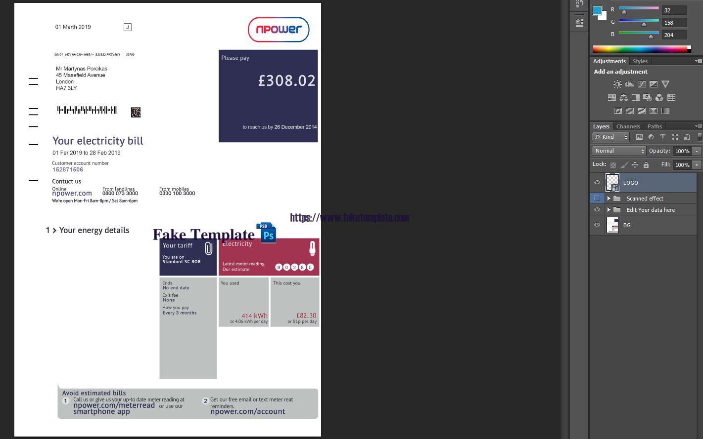 Uk Utility Bill Psd Template : British Gas Proof of address Psd Template V2